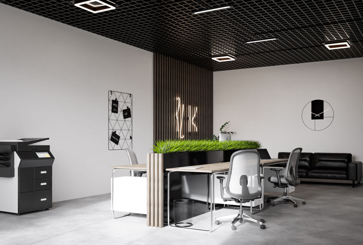 - na suficie stelaż z kasetonami