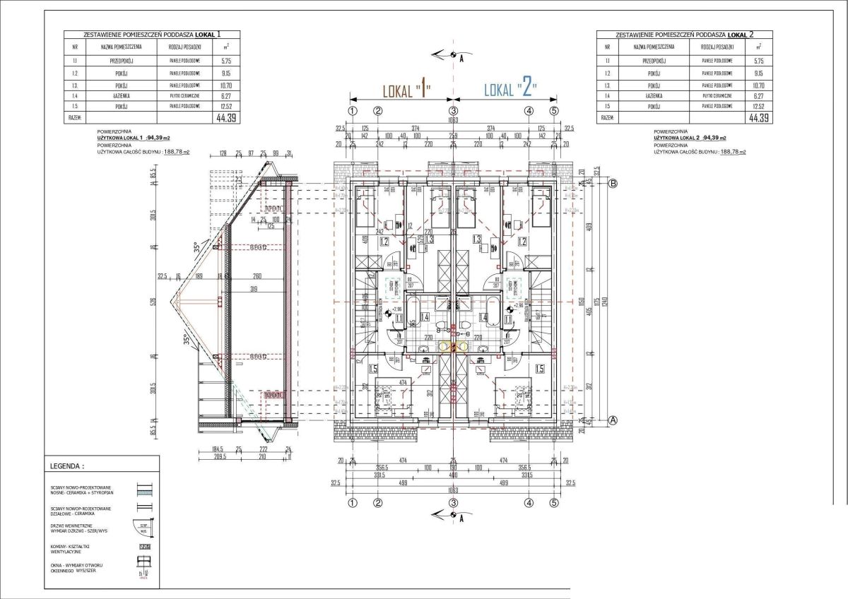 Całkowita powierzchnia lokalu mieszkalnego wynosi 98,22m2 a użytkowa 94,39m2 i dzieli się na: