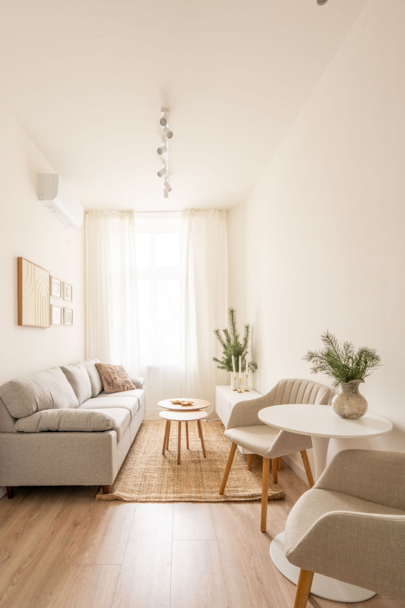 Wnętrze mieszkania zostało starannie wykończone, by zapewnić mieszkańcom wygodę przez cały rok: