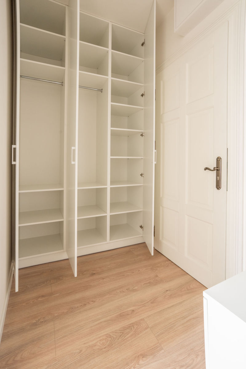 - W sypialni szafa w zabudowie na wymiar, maksymalne wykorzystanie przestrzeni i estetyka